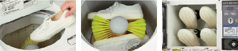 自動投入されるスニーカー専用洗剤を使用し、らせん状に植毛された「スパイラルブラシ」と底面の補助ブラシで、家庭では落としにくいドロンコ汚れもしっかり洗います。ブラシの素材はナイロンを使用しているので痛みを抑えます。ご自宅で土ぼこりや泥などの汚れをよく乾かし、土汚れを取ってから洗濯機に入れると汚れが落ちやすくなります。